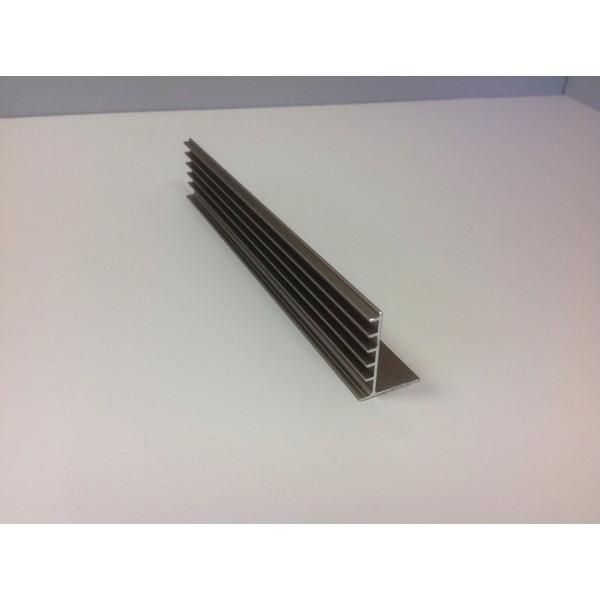 Profil en aluminium anodisé coloris bronze. Uniquement disponible en anodisation bronze car situé dans la zone d'ombre du nez de marche.